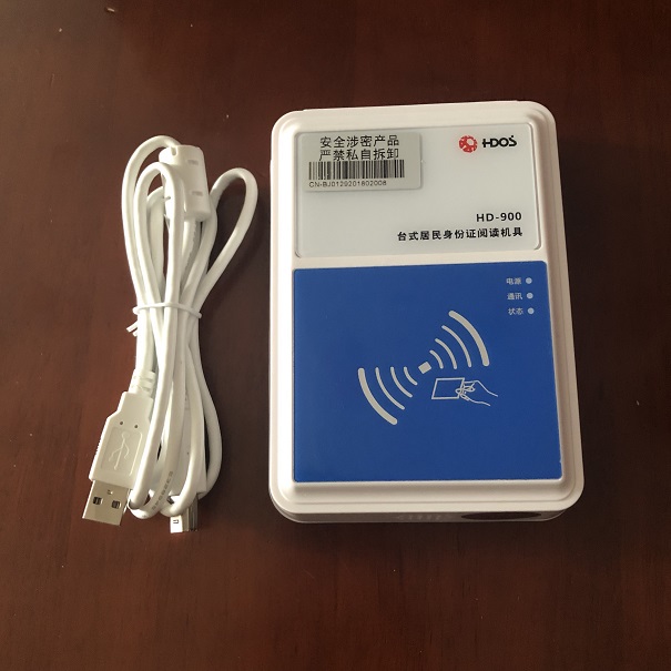 1.华大HD-900台式居民身份证阅读机具是一款采用非接触式IC卡技术,通过USB接口与计算机终端或其它设备连接,用于读取居民身份证专用芯片内相关信息的专用机具。