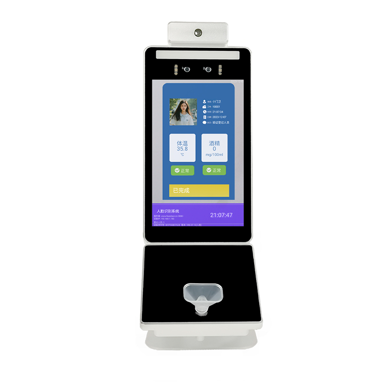 人脸识别酒精检测二维码考勤测温门禁一体机采用双目活体检测技术,有效杜绝照片、视频等伪造手段,戴口罩状态下识别率仍达 99.9%,识别速度快至 0.1 秒。内置高精度电化学燃料电池传感器, 二维码支持对接访客系统,刷卡功能则适配常规的人员出入管理场景,方便员工、访客等使用。可与门禁系统联动,实现考勤打卡功能,采用多点阵、非接触式红外传感器,测温范围为 28°C-42.5°C,测温精度为 ±0.3°C,体温超标设备自动报警。