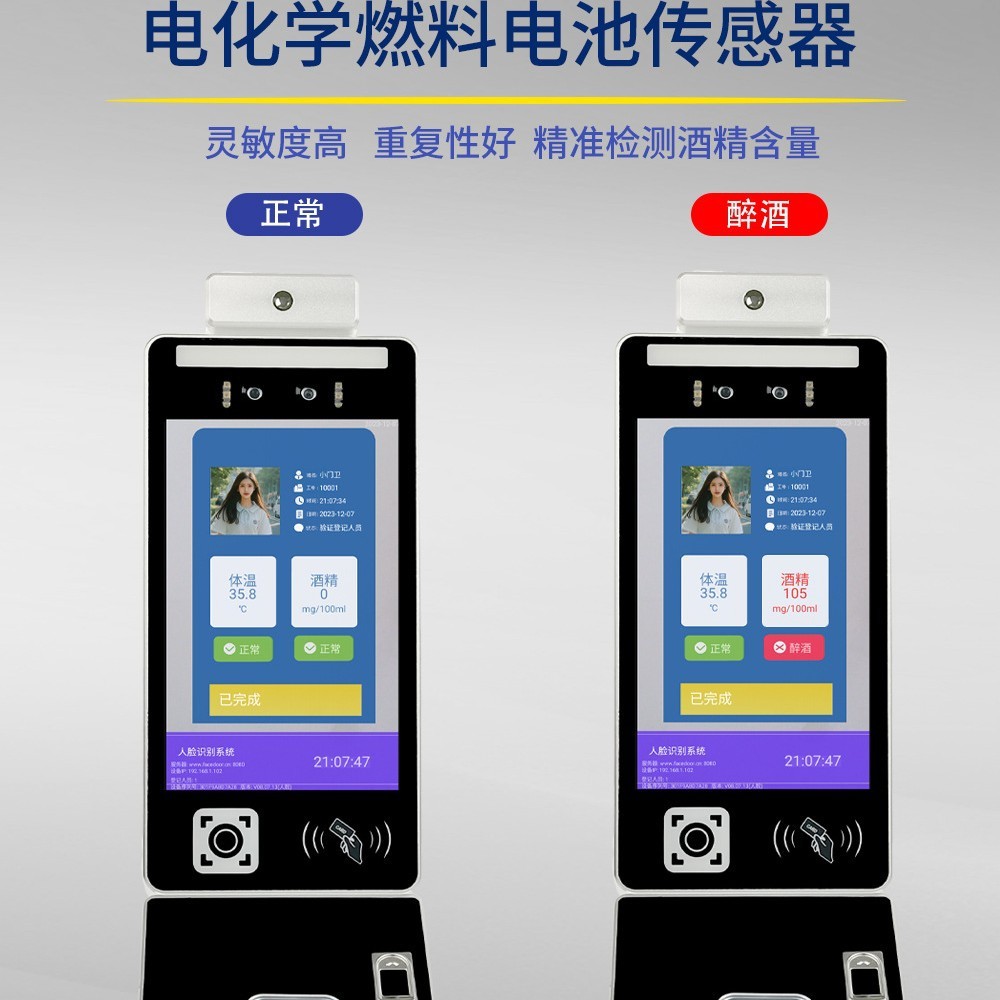小门卫酒精检测刷脸速通门手机电脑IC/ID卡开门闸机是一款集安全防控、身份核验与高效通行于一体的智能闸机设备,专为工厂、矿山、工地、铁路运输等对岗前安全有要求的场景打造,支持人脸识别、IC/ID 卡刷卡、手机端等多种开门方式,人脸识别采用双目活体检测技术,戴口罩状态下识别率仍达 99.9%,0.1 秒快速响应,杜绝代打卡与身份冒用。内置高精度电化学燃料电池传感器,1 秒内完成酒精含量检测
