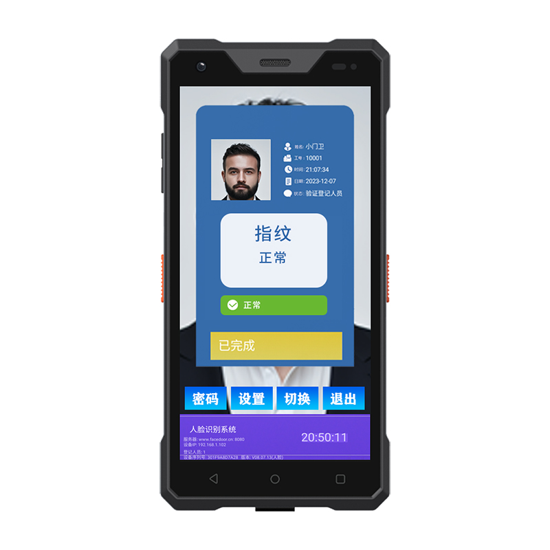 手持小门卫可移动人证核验打卡考勤一体机拥有免费完善的云平台管理系统,支持 Win、 Linux平台部署,可在云端或本地工作。用户能通过手机或电脑随时随地登录系统进行管理和数据查看,实现多台设备同一平台管理。具备数据存储功能,可存储大量考勤数据和人员信息。同时支持数据导出,能导出多种排版方式的考勤报表,导出信息完整,包括姓名、证件号码、住址、有效期、照片。支持人脸识别考勤、指纹考勤打卡、二维码考勤打卡、刷卡考勤打卡等,满足不同场景和用户的需求。具有语音播报功能,可实时反馈考勤结果等信息,满足更多场景的需求。