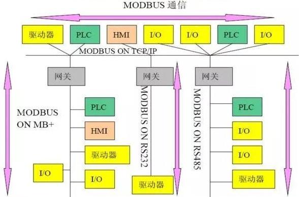 Modbus协议允许在各种网络体系结构内进行简单通信,每种设备(PLC、人机界面、控制面板、驱动程序、输入输出设备)都能使用Modbus协议来启动远程操作,一些网关允许在几种使用Modbus协议的总线或网络之间的通信。