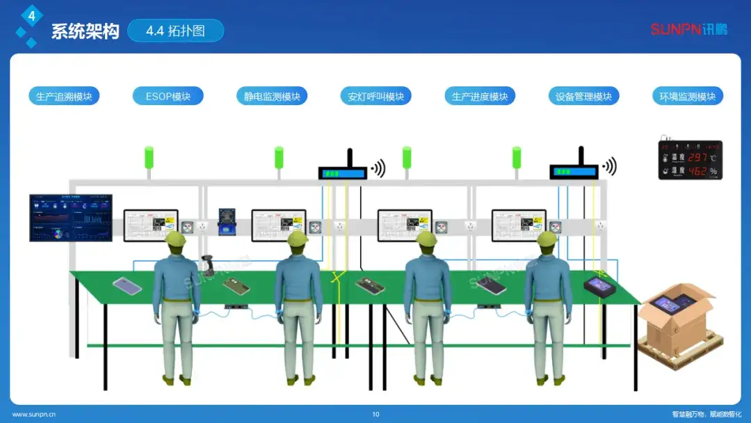 更值得关注的是,通过讯鹏自研的 IOT 网关,系统可兼容 PLC、OPC、Modbus 等多类工业协议,实现自动化设备、静电监控仪、温湿度传感器等终端的 “全连接”。这种 “感知-传输-分析-决策” 的闭环能力,正是物联网技术赋予制造业的 “智慧大脑”。