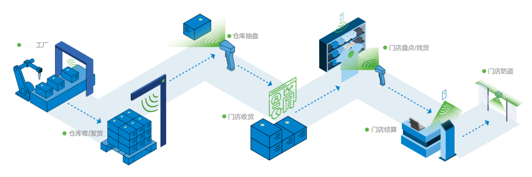 无论是在高密度的仓储环境,还是在陈列复杂的门店,亦或是频繁的售后调拨中,RFID 都能在不同节点被反复读写,保持数据的一致性。