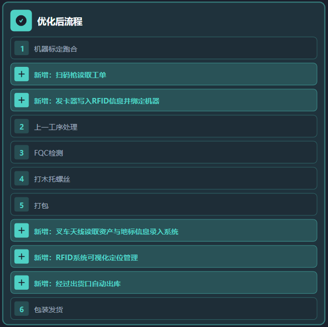 原来繁琐的入库、出库流程,依赖人工记忆与记录。优化后,RFID系统实现自动信息绑定、实时定位、自动出库更新,流程效率提升显著,错误率大幅降低。