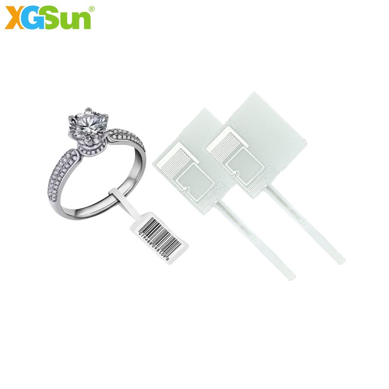 此款带尾巴的RFID珠宝标签是珠宝行业内最受欢迎的标签造型。25×13mm精巧尺寸,轻薄隐蔽,可轻松悬挂于项链、戒指、耳钉等各类珠宝,牢固且不损伤饰品,完美融入珠宝陈列设计。读取灵敏度达到-17dbm,读距可达4米,PET防水面材支持600Dpi高清打印,可满足绝大部分用户的打印需求。