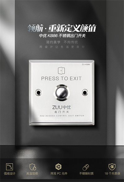 ZU-KB86不锈钢出门开关的价值,不仅在于其304不锈钢材质的硬核耐用性,更在于通过50万次按压寿命、密封结构设计与V0级阻燃材质,精准解决了高频通行与恶劣环境下的各类痛点。它将传统的“出门执行终端”升级为“工业级耐用节点”,为商业楼宇、工业厂房、住宅小区等场所提供了安全、可靠、美观的出入口控制解决方案。无论是新建项目的高标准要求,还是旧改项目的品质升级,ZU-KB86都是值得纳入选型清单的专业选择。