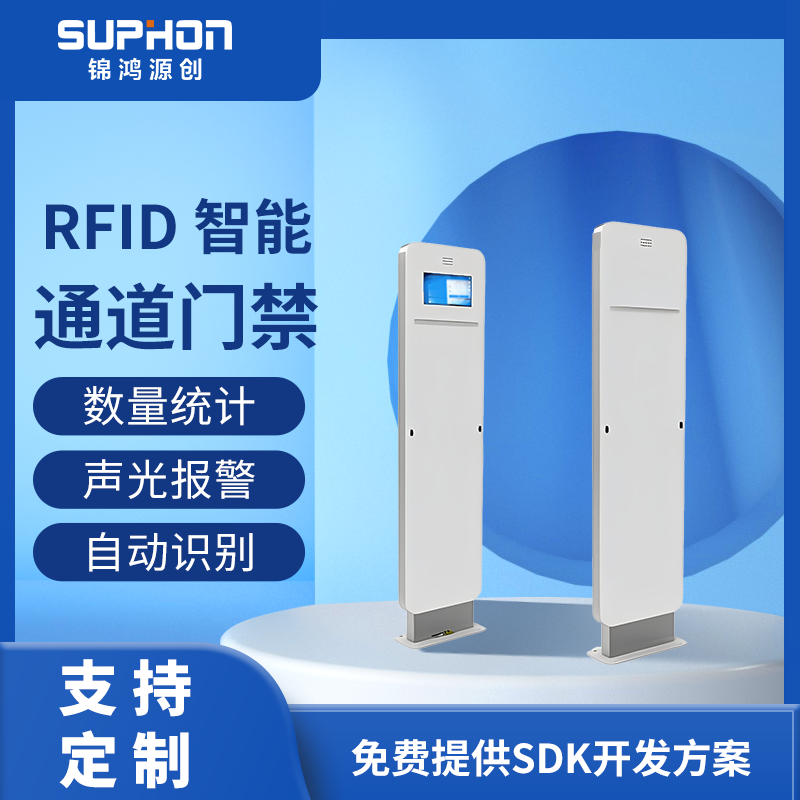 智能安全门禁,符合I5018000-6C(EPC C1G2)协议,外型简洁大气,质量稳定、性能可靠,支持多标签读取,采用红外触发读取模式,支持进出人数统计,集成声光报警为一体,可使用在线/离线EAS报警两种模式,设备支持网口通信,并可拓展WiFi、4G等多种通讯方式。RFID智能安全门禁,主要用于图书馆/档案馆、仓储、门店等场景下的进出管理,起到批量智能安全门禁识别、防盗报警的作用。采用超高频RFID射频技术,实现与RFID标签进行快速、批量识别。