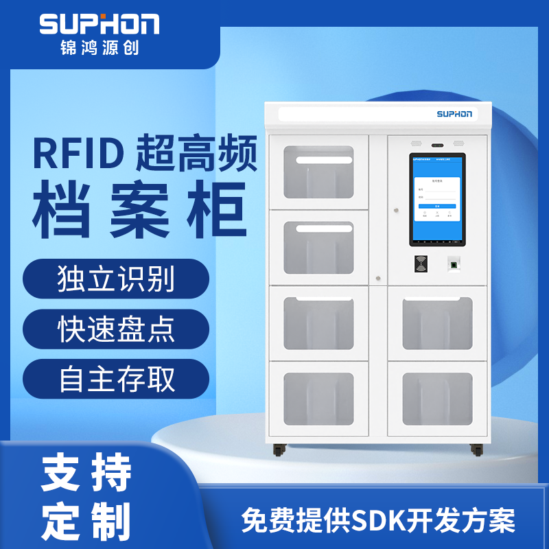 超高频RFID档案管理柜,符合ISO18000-6C(EPC C1G2)协议,外型简洁美观,质量稳定、性能可靠,集成21.5寸电容触摸屏,双目人脸识、超高频刷卡功能、方便交互操作,柜体支持RFID多标签读取,采用网络进行数据传输,是一款高性能、操作方便的专用RFID智能档案管理柜。