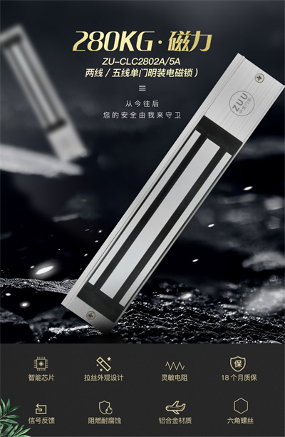 在现代化门禁安防系统中,电磁锁作为执行终端,其可靠性与智能化程度直接影响整体安防水平。ZUU中优推出的ZU-CLC2805A单门五线反馈电磁锁,在保持280kg(600lbs)超强拉力的基础上,集成门磁状态反馈功能,可实时向控制中心回传门体“锁闭/开启”状态,为智能化安防管理提供精准数据支撑。