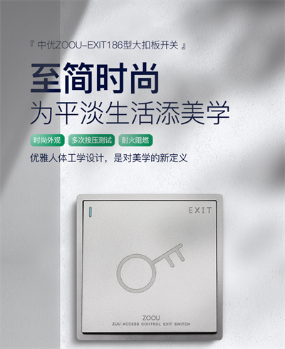 在门禁系统中,出门开关作为最基础的交互终端,其可靠性、美观度与适配性直接影响用户体验与工程品质。ZUU中优推出的ZOOU-EXIT1三线制大面板出门开关,凭借奢华灰哑光面板、百万次按压寿命、三线制全功能适配及V0级阻燃材质,成为写字楼、商场、医院、住宅等全场景通行的理想选择。