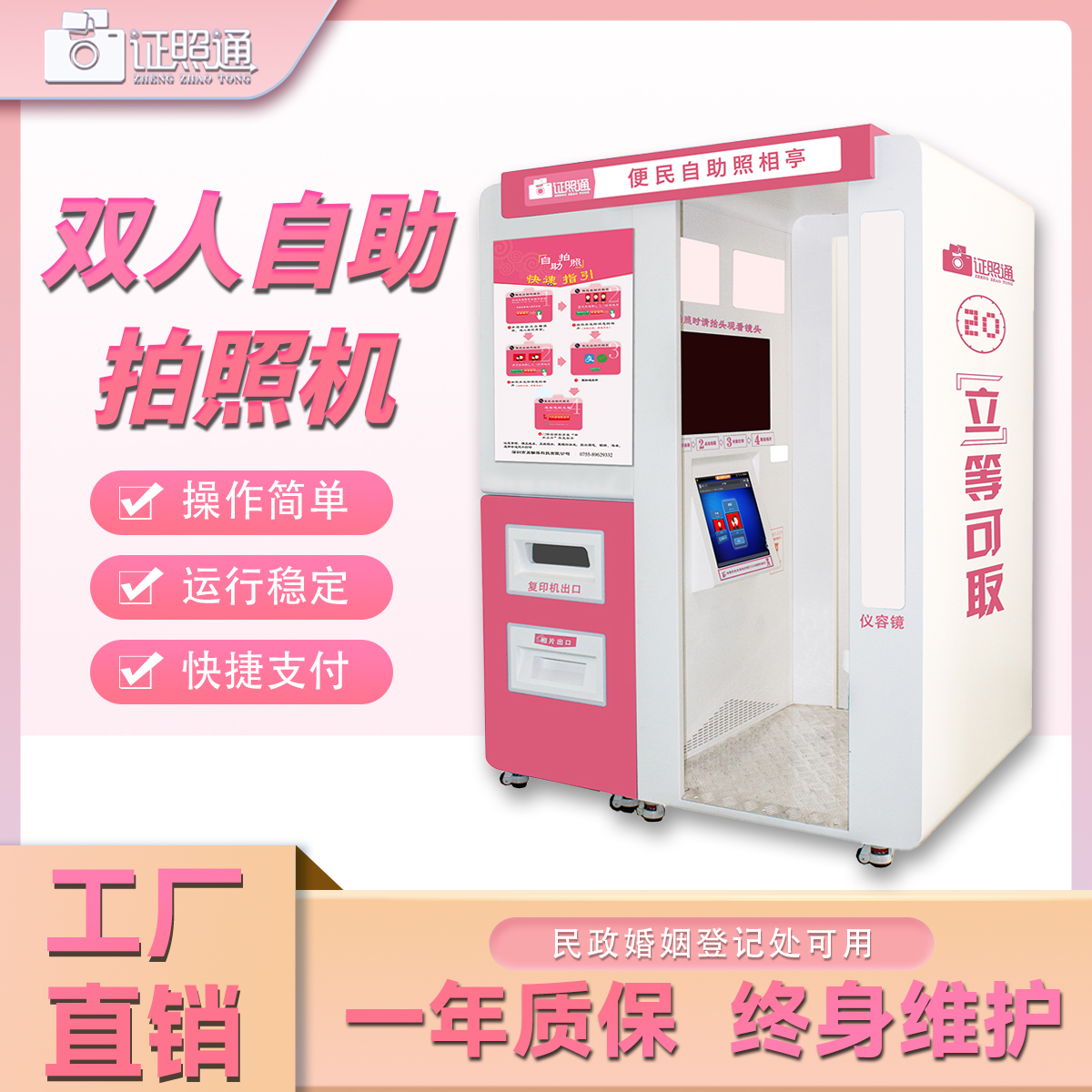 专业团队保驾护航,品质可靠、服务到位,采购使用更安心。双人自助拍照机・结婚登记专用款来袭!