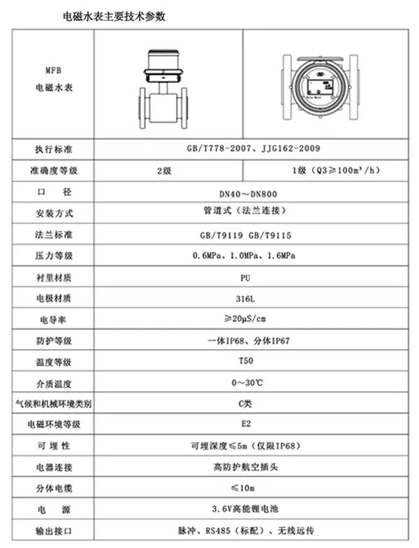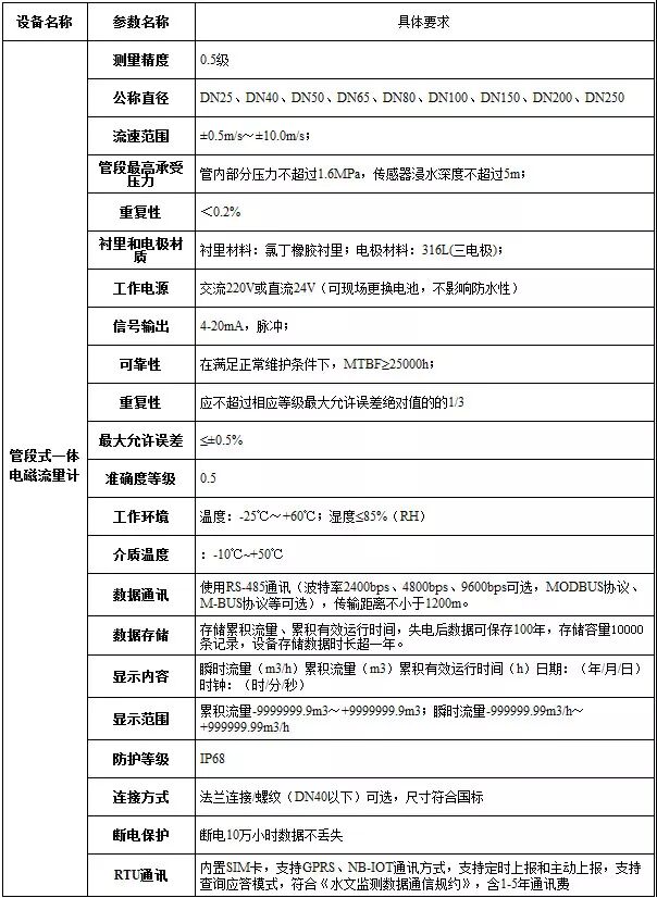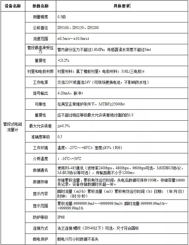 流量监测设备-管段式电磁流量计技术参数要求