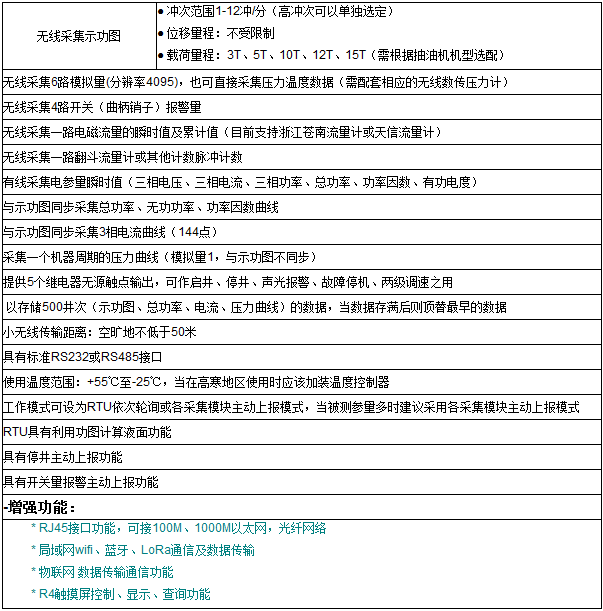 无线示功仪集成载荷、位移、GPRS/CDMA/4G/NB-IoT传输于一体,是采油井的一个重要指标,示功图反应的是承受在光杆上的力,通过一个冲程内力的变化,可以了解到抽油机和油井底下的情况,也可以通过示功图对产油量和动液面进行分析。