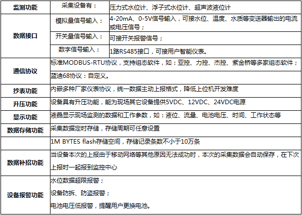 -产品描述 电池供电GPRS/CDMA 无线水位计是将水位测量、存储和无线传输三大单元有机结合为一体,实现水库、水池水位的连续动态测量,并向监控中心自动上报水位信息。同时内部具有大容量存储空间,连续存储水位测量数据,构成连续自计式水位计,水文和供水系统实现水位动态静态测量的可靠手段,为防汛指挥部门提供及时可靠的防洪调度依据。